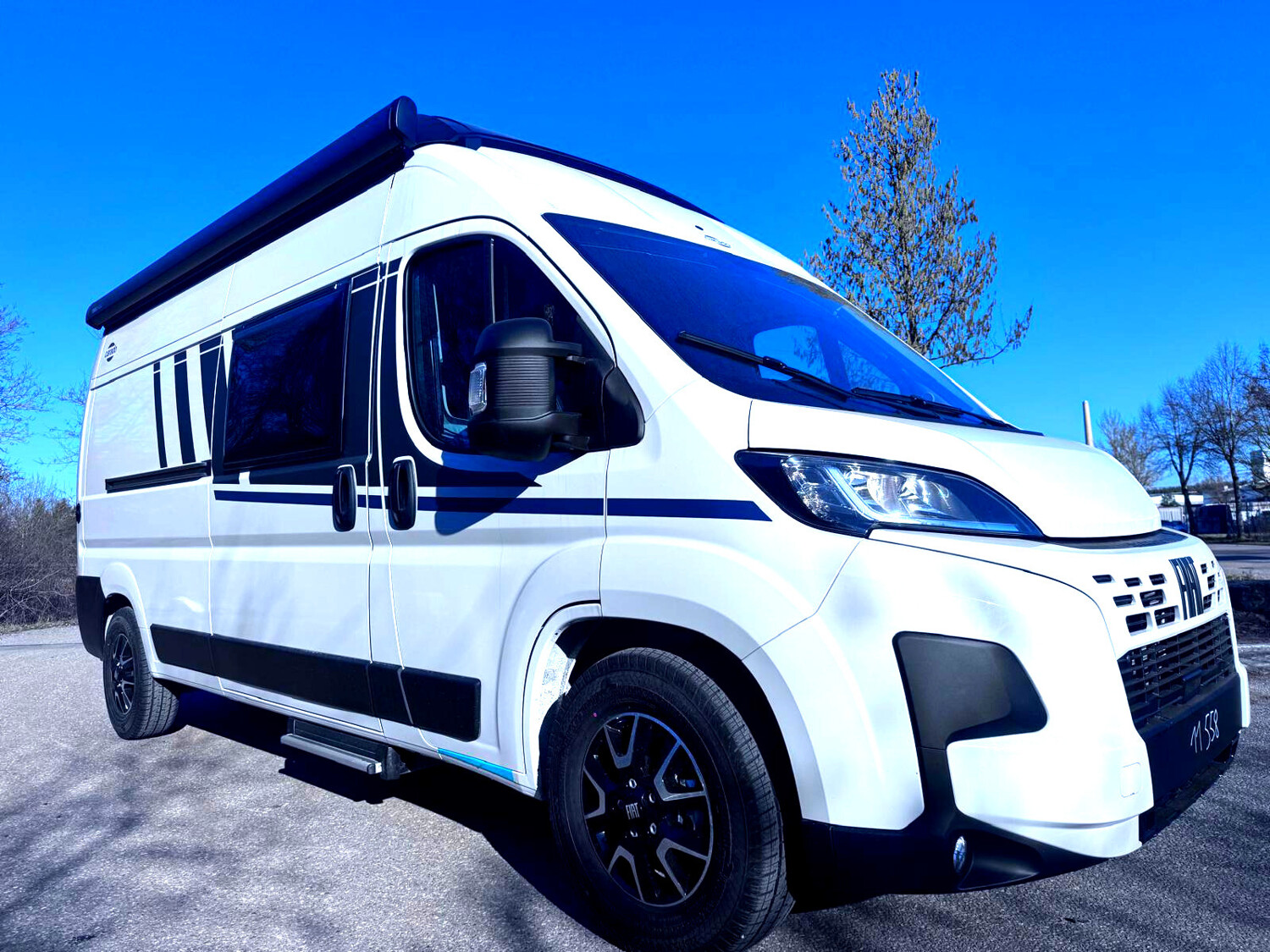 • Pro Paket (Optik Paket 1 | Stoßfänger lackiert, Optik Paket 2 | Alufelgen, Basic Paket, Dieseltank 90 l, Faltverdunkelung Fahrerhaus, Markise 3,75 m (Schwarz), Beklebung pro)