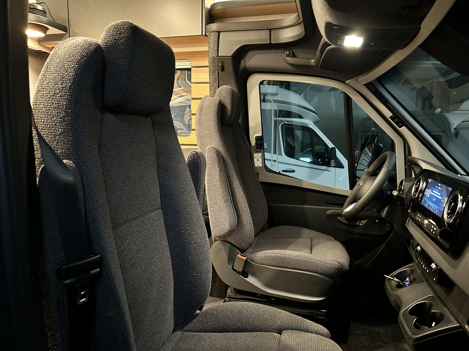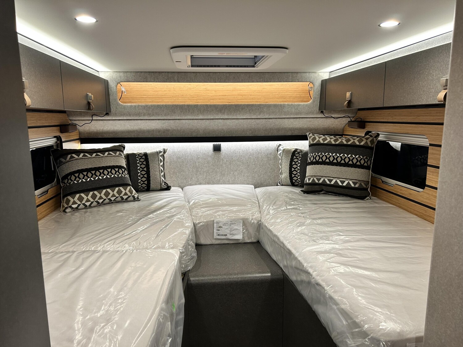 • Wohnkomfort-Paket (Schlafsystem mit Tellerfederrost für Heckbett(en), Spannbettlaken nach Maß für Heckbetten individuell an Matratzen angepasst, Filzverkleidung in Heckgarage, Einlegeboden in der Dusche für ebenen Laufboden, 4 Kissen mit Bezug, Ambient-Light-System: Mehr-Ebenen Lichtsystem mit dynamischer und individueller Steuerung der Beleuchtung (inkl. Lichttemperatur) sowie stimmungsvoller Sockelbeleuchtung, Lichtpaket (Multifunktionale Pendelleuchte sowie eine Ambiente-Leseleuchte für die Multifunktionswände), 3 x 230 V / 1 x 12 V Zusatzsteckdosen)