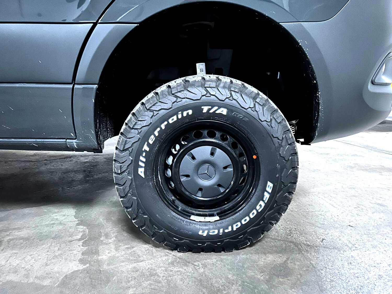 • 16 Stahl Reserverad inkl. Stollenbereifung (All-Terrain) und Halterung außen an der Heckwand